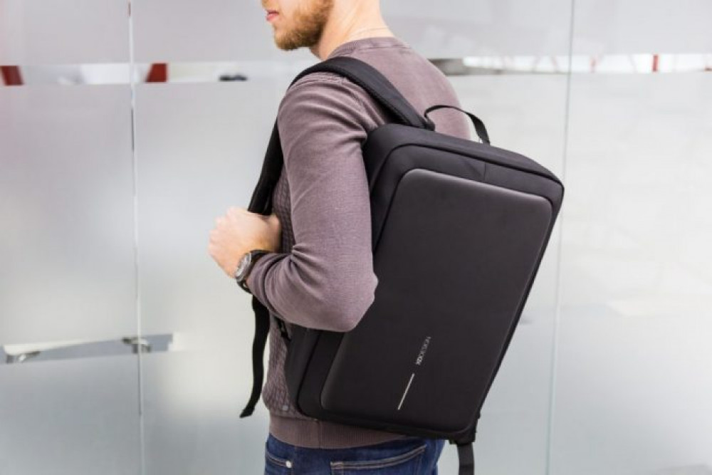 Модель Anti-Theft Backpack & Briefcase виконана в діловому стилі. Матеріал має водовідштовхувальні властивості і складається з декількох шарів, що знижує можливість розрізати його лезом. Внутрішня металева рама дозволяє зберегти форму аксесуару і захистити техніку. Рюкзак може трансформуватися в кейс з ручкою або сумку через плече. Захист від злодіїв втілений за допомогою внутрішніх блискавок і замків. XD Design Bobby Bizz — це відмінний вибір для захисту дорогого ноутбука або планшета.