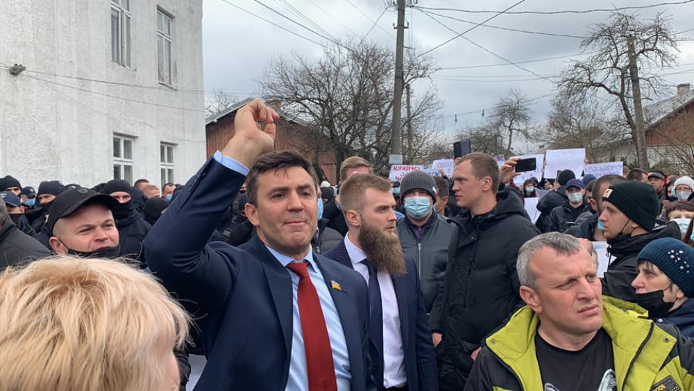 "Ось ви кажете, що це брехня, а ось тут жіночка з ДВК, яка навіть не здала бюлетені. Каже, що не їла, а їсти не хоче. Ось вам відповідь. Ось вам маніпуляції", - звернувся Тищенко до натовпу.
