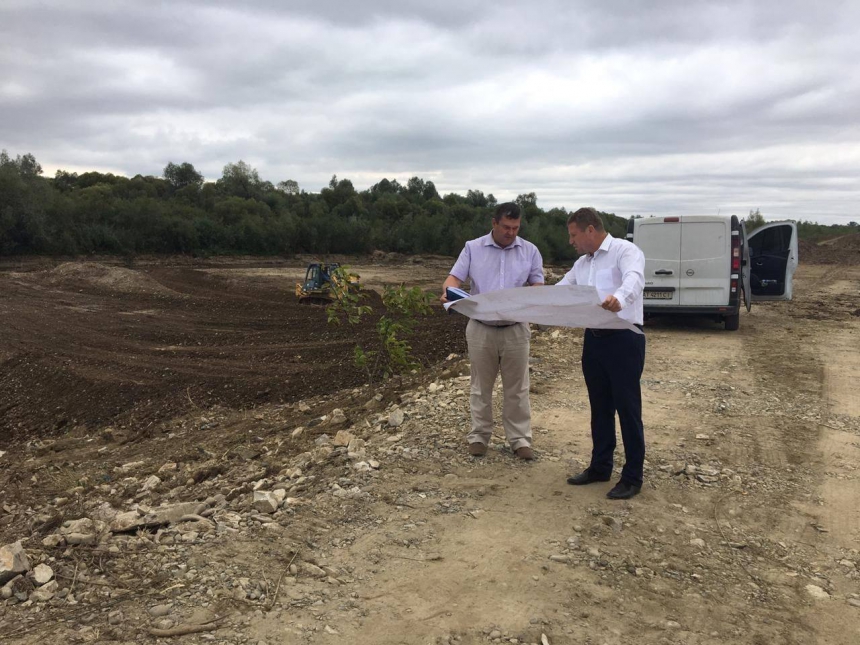 Начальник Дністровського БУВР Роман Михайлюк та заступник начальника Олег Козар оглянули роботи, які ведуться на пошкодженій ділянці дамби в селі Березівка Тисменицького району.