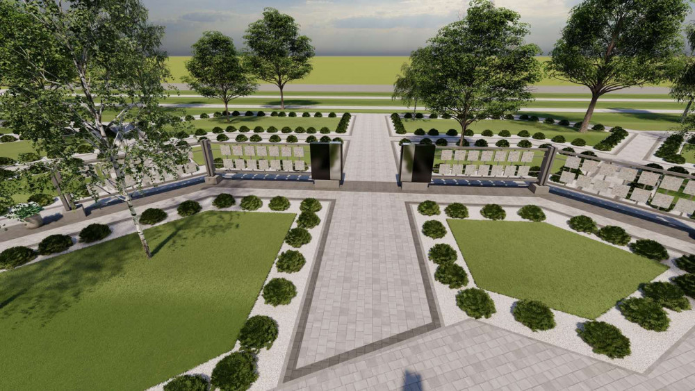 Макет Меморіалу та запропонована зона зелених насаджень на фото нижче.