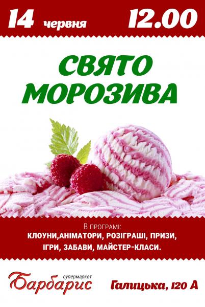 Це захоплююче дійство розпочнеться о 12 годині 14 червня на майданчику перед супермаркетом (вул. Галицька, 120А). Супермаркет «Барбарис» і містечко «Калинова слобода» гостинно запрошують мешканців Пасічної та всіх івано-франківців на «Свято морозива»!