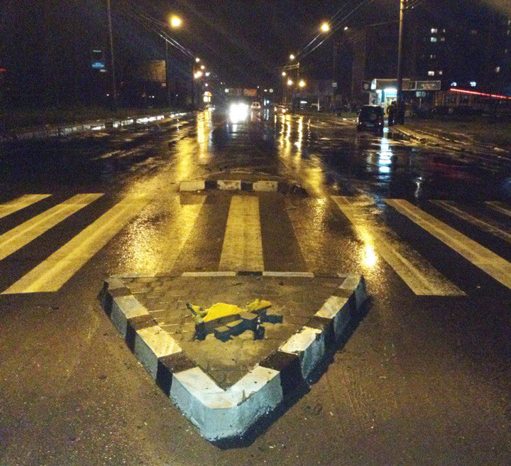 Минулого тижня на вулиці Івасюка трапилася дорожньо-транспортна пригода, під час якої автівка виїхала на острівець безпеки і збила на ньому попереджувальні знаки. Після цього в темну пору доби там трапилося ще кілька аварій, пише ЗК
