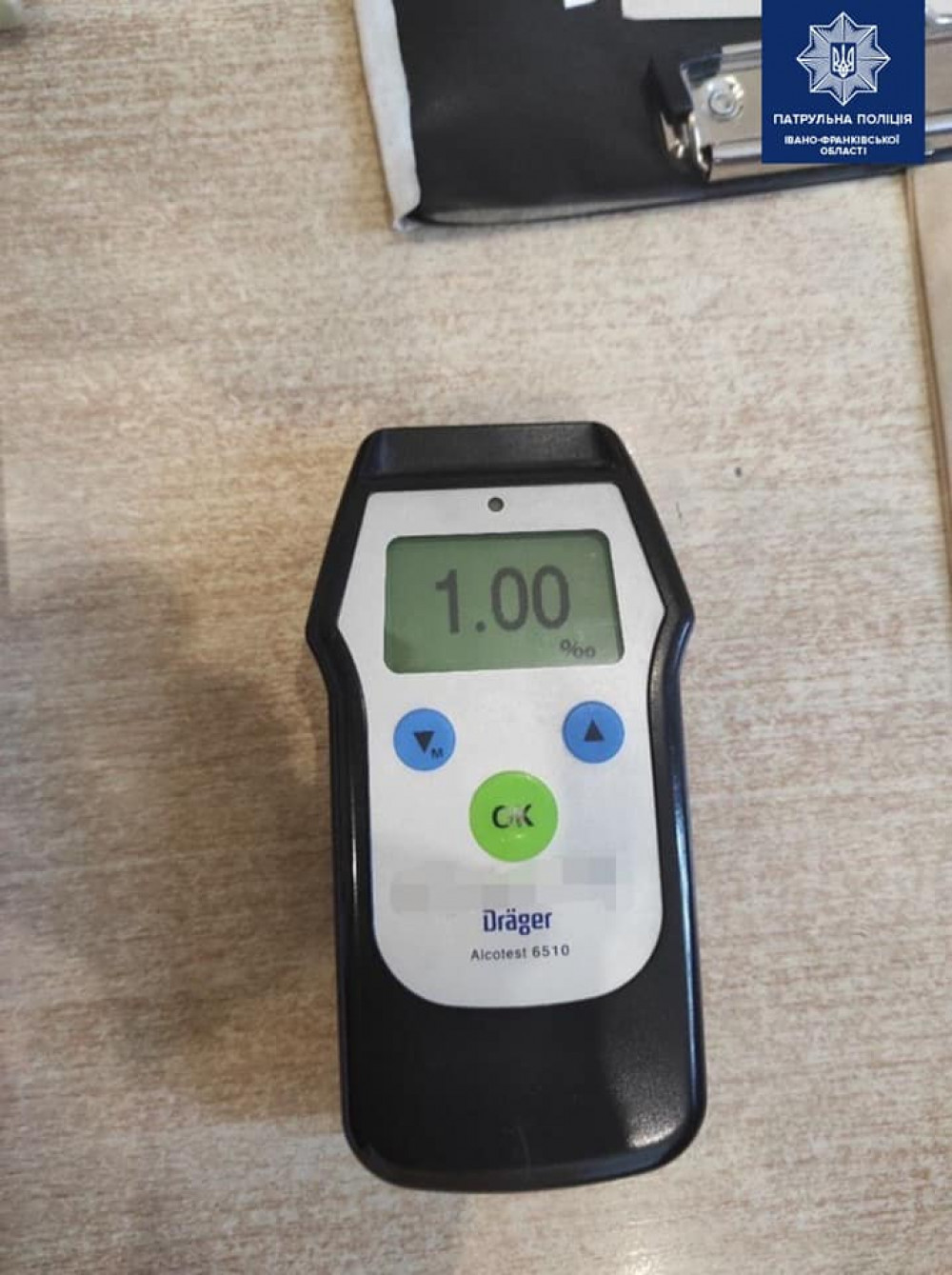 Під час спілкування з водієм інспектори виявили у нього ознаки алкогольного сп’яніння. Чоловік погодився пройти освідування в медичному закладі. Висновок лікаря — чоловік знаходиться в стані алкогольного сп'яніння.