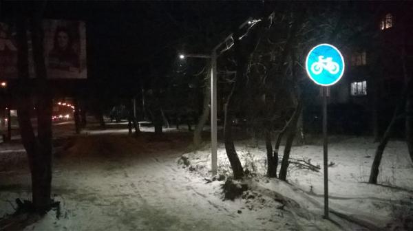 На вулиці Довженка в Івано-Франківську освітлили нещодавно облаштовану велодоріжку.