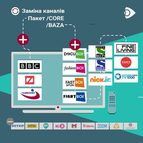 У пакеті /CORE канали «Inter Media Group» будуть замінені на: BBC, Канал Z, Телевсесвіт.