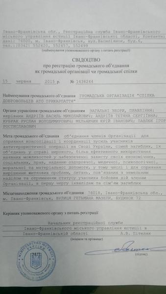 У Франківську зареєстрували ГО"Спілка добровольців АТО Прикарпаття"