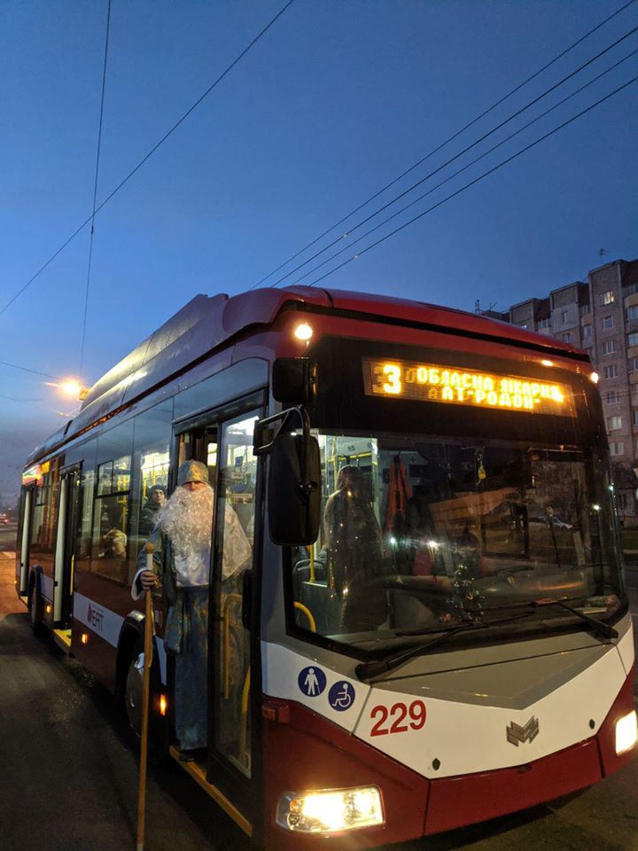 Вранці у франківському громадському транспорті святий Миколай вітав пасажирів зі святом.