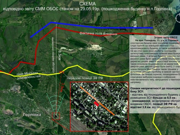 У щоденному звіті СММ ОБСЄ за 30 травня поточного року команда Місії констатувала факт обстрілу по вулиці Покидька будинок 13 у місті Горлівка, що на непідконтрольній урядові України території.