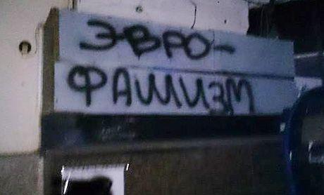 За його словами, фасади штабу, декількох прилеглих будинків та магазинів "розмальовані" наклепницькими написами на адресу прихильників євроінтеграційного напряму України: "Єврофашизм", "Євронацисти" тощо.