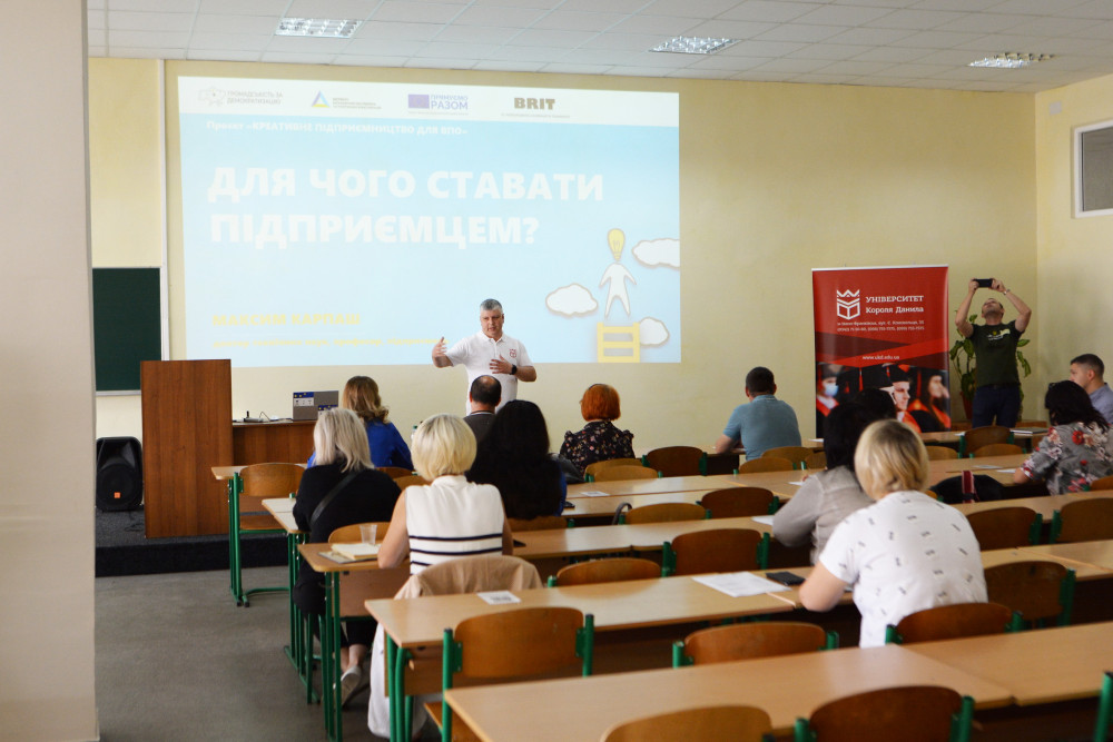 Основні особливості креативного підприємництва презентував співорганізатор проєкту доктор технічних наук, професор, підприємець Максим Карпаш.