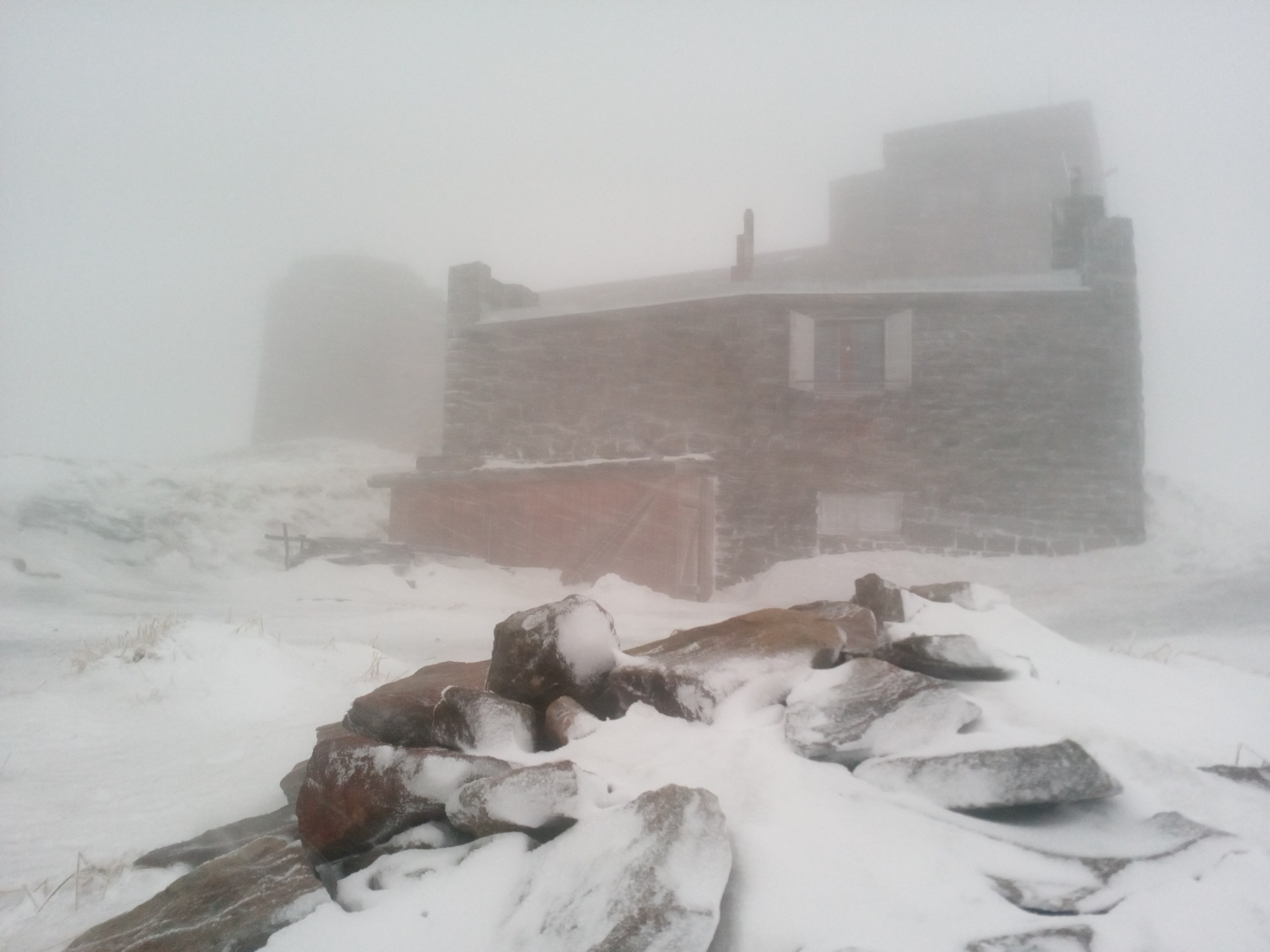 Станом на 08:30 22.12.2019 на г. Піп Іван Чорногірський хмарно, видимість обмежена. Вітер Південний 14-15 м/с. Температура повітря -1°С. Падає сніг.
