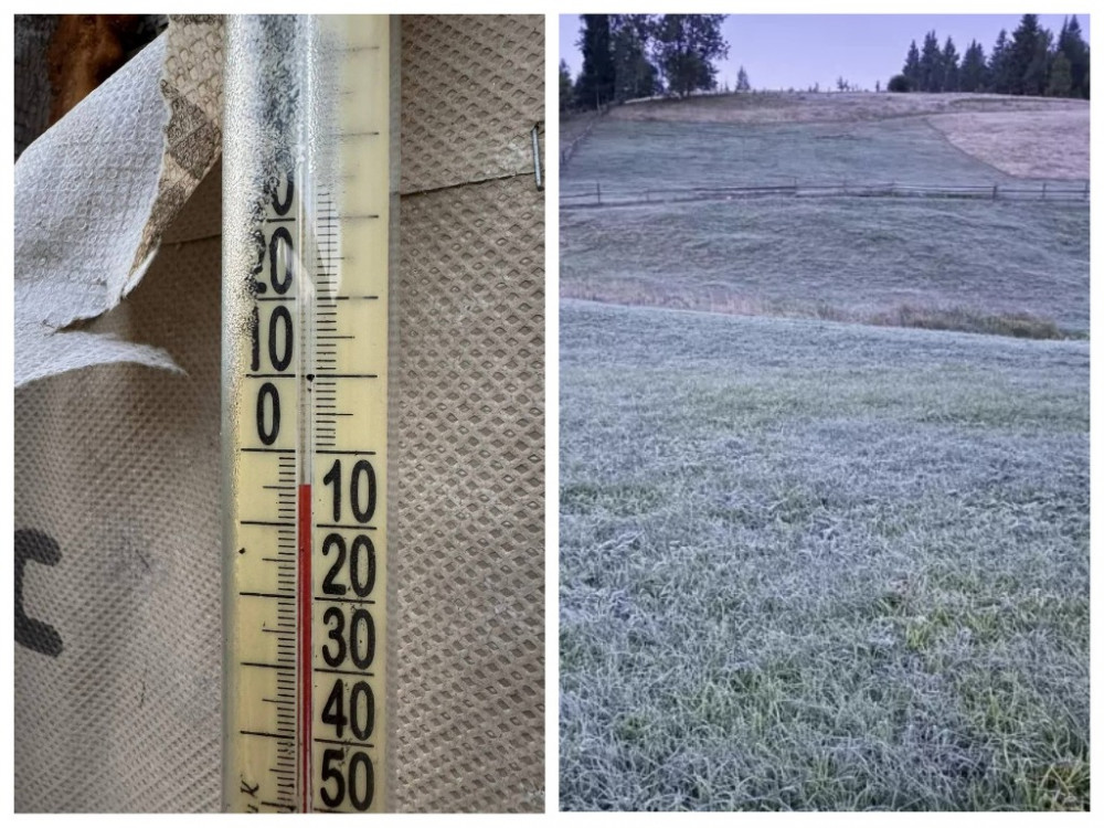 У селі Верхній Яловець Селятинської громади, що на Буковині, вранці 25 серпня зафіксували майже 5 градусів морозу.