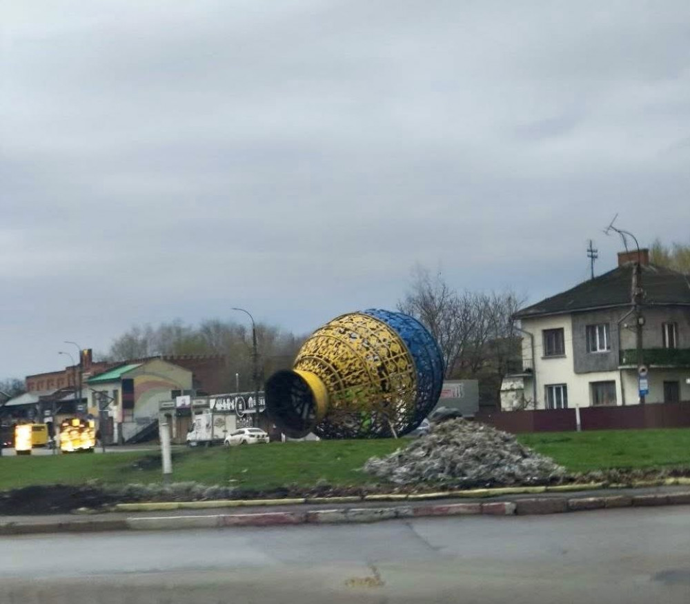 У Коломиї автівка знесла декоративну писанку на кільці (фотофакт)
