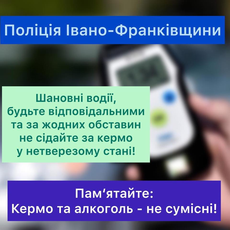 Поліція Прикарпаття звертається до громадян з проханням бути свідомими та не сідати за кермо у нетверезому стані! Безпека на дорогах починається з кожного!!!