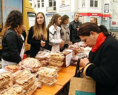 На центральній вулиці Коломиї продавали хлібобулочні вироби за ціною виробника. Організатори акції благодійний фонд "Ми допоможемо" та місцевий хлібокомбінат. Зароблені кошти будуть відправлені для потреб поранених вояків. Відео НТК