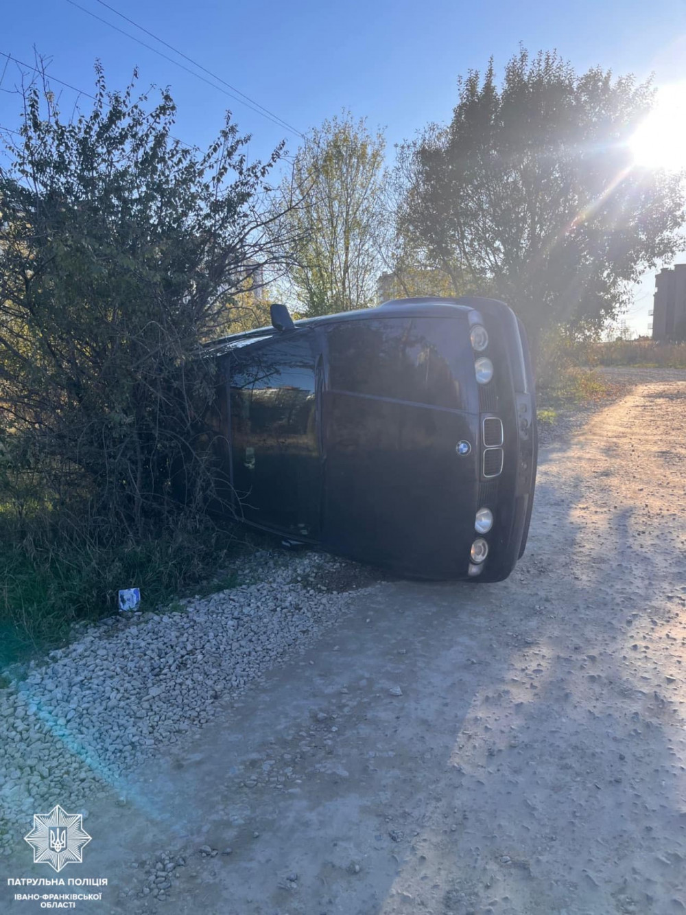 Днями патрульні отримали виклик з приводу ДТП у селі Крихівці. Прибувши на місце події інспектори виявили автомобіль BMW, що був перекинутий, та трьох молодиків неподалік.