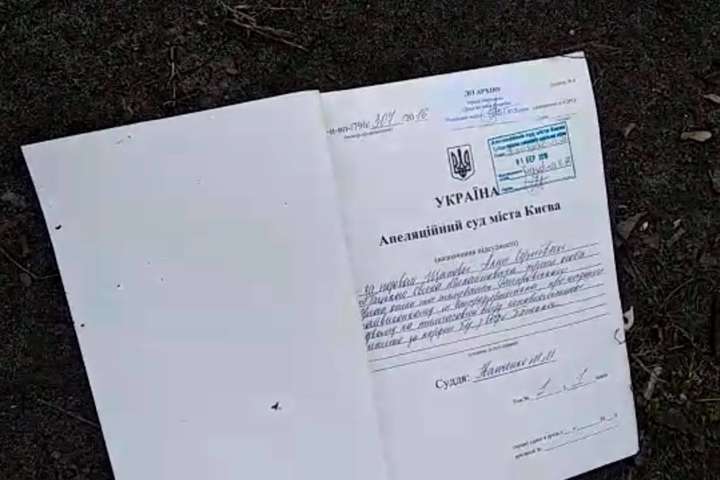 На відео, що відзняв очевидець, видно, що у приміщенні Київського апеляційного суду пошкоджене вікно, а біля будівлі, на проїжджій частині та кладовищі розкидані листочки з апеляційних справ суду.