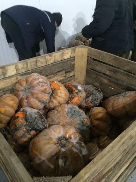 "На овочах явні ознаки гниття, пліснява, потоки і стійкий запах гнилі. 40 тонн овочів. Більше половини вже не придатні до вживання. При нас викинули в сміття дві палети продуктів. Кілька сімей залишились голодними", – написав він.