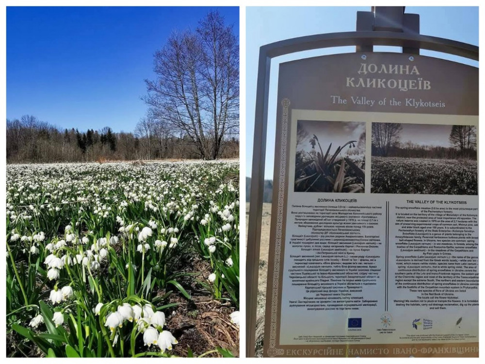 "У Печеніжинській громаді на території Молодятина у заповідному урочищі місцевого значення «Кропивець» на площі більше 3 га розташована поляна білоцвіту весняного або, як в нас кажуть у нас, кликоцей. Природно-заповідний об’єкт створений у 1976 р. на площі 2,7 га з метою збереження дослідних культур ясеня звичайного з сосною Веймутова, дубом і вільхою чорною віком понад 150 років. Підпорядковується Печеніжинському лісництву ДП "Коломийський лісгосп", - йдеться у повідомленні.