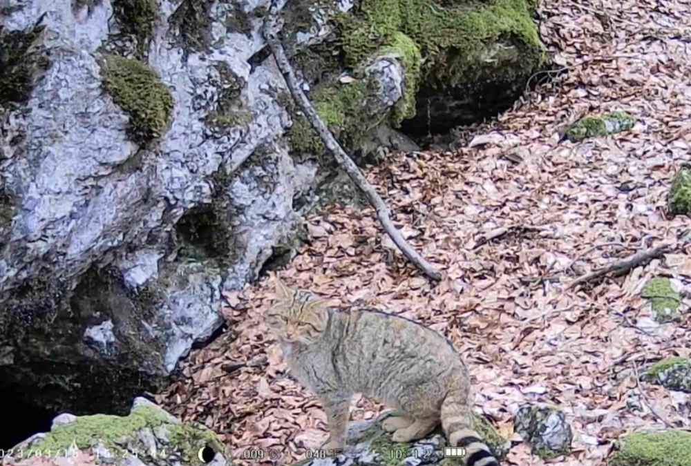 В одному з мальовничих масивів Карпатського біосферного заповідника об’єктив фотопастки зафіксував дикого кота.