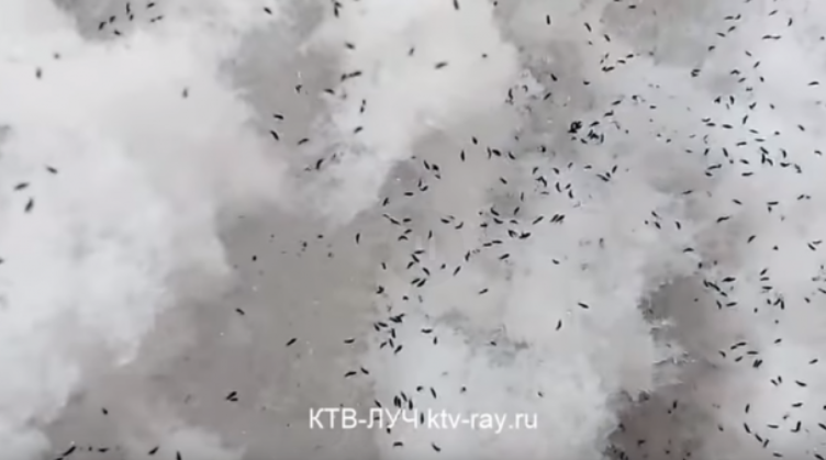У російському селищі Балашейка Самарської області 12 березня пройшов незвичайний снігопад – крім сніжинок на землю падали маленькі комахи чорного кольору.