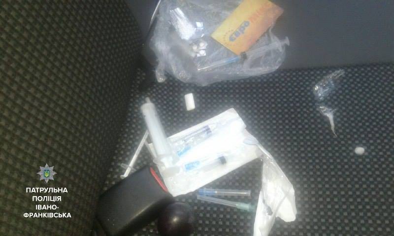 На місце патрульні одразу викликали слідчо-оперативну групу. У присутності понятих з салону автомобіля поліціанти вилучили шприци та 10 нарковмісних таблеток.