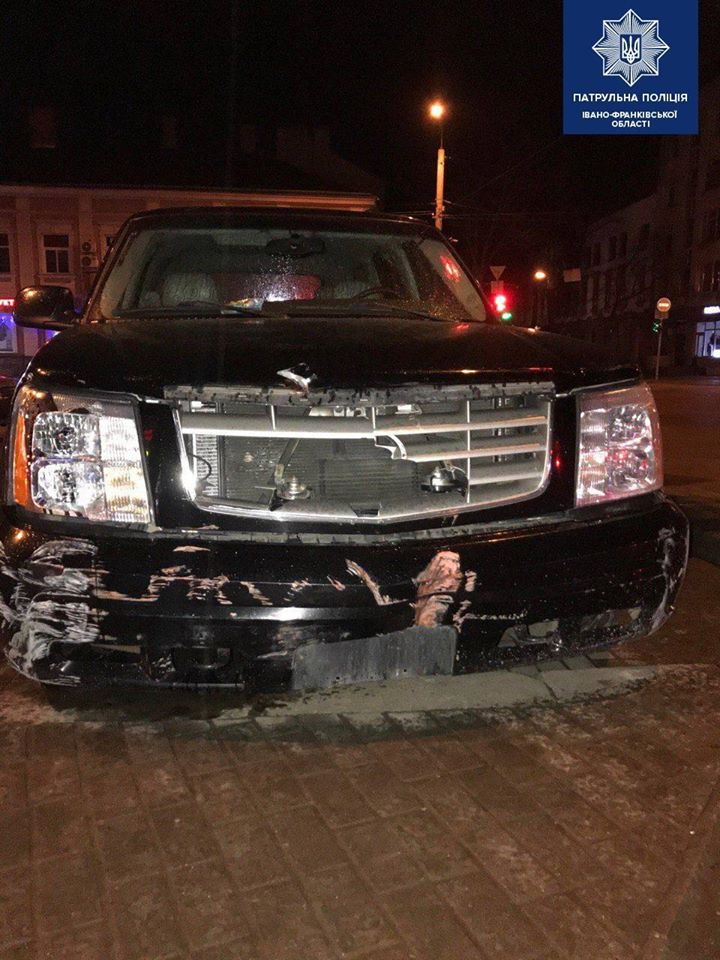 Патрульні зупинили автомобіль з численними механічними пошкодженнями. Як з’ясувалося, водій автомобіля Cadillac Escalade пошкодив огорожу, здійснив наїзд на рекламний щит, після чого поїхав з місця події.