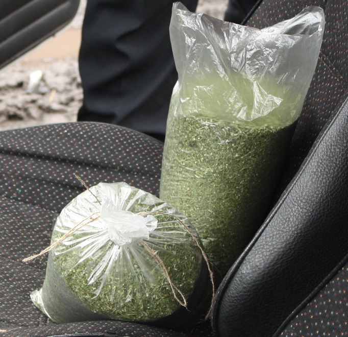 Оглянувши салон автомобіля, вони виявили паперовий згорток та полімерний пакет з подрібненою речовиною рослинного походження, схожою на наркотичний засіб "марихуану", а також саморобний пристрій для його вживання шляхом викурювання правоохоронці.