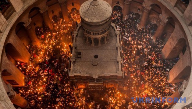 "На символ благословення Божого напередодні Великодня традиційно чекали сотні тисяч прочан. Сходження вогню відбулося о 14:17 за київським часом", йдеться у повідомленні.