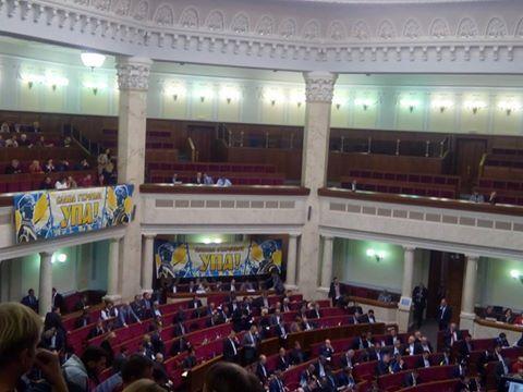 У Верховній Раді з'явились плакати "Слава Героям УПА!"