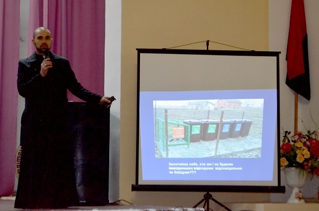 Координатор проекту, о. Михайло Дзуль, референт Екобюро в Івано-Франківській архиєпархії, детальніше розповів про проблему відсутності системи роздільного збору твердих побутових відходів в Україні та проблему переповнених сміттєзвалищ, які є причиною погіршення екологічної ситуації та здоров’я населення, а також про те, як правильно збирати і сортувати відходи.