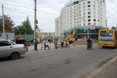 За його словами, додатковий вхід до школи-ліцею відкрили з вулиці Проектної. На перехресті вулиць Мазепи і Гординського встановили спеціальний щит з інформацією про те, що прохід по тротуару закритий. А на перехресті з вулицею Проектною і у місці розширення вулиці Мазепи, на відстані в один метр від краю дороги, встановили бетонні блоки, які мають забезпечити безпеку пішоходам, котрі, попри заборону, все ж опиняться в зоні проведення дорожніх робіт.