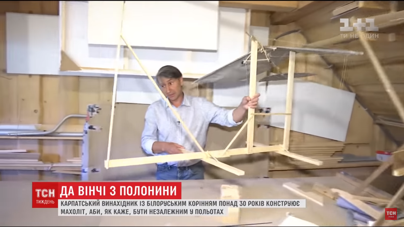Винахідник проштудіював усі креслення Леонардо да Вінчі, тисячі нотаток послідовників і понад 30 років будує орніокоптер. Схожий пристрій вже створювали в Торонто, але для запуску використали авто. Володимир же хоче стартувати як задумував Леонардо - тільки власними силами. Більше в сюжеті ТСН.