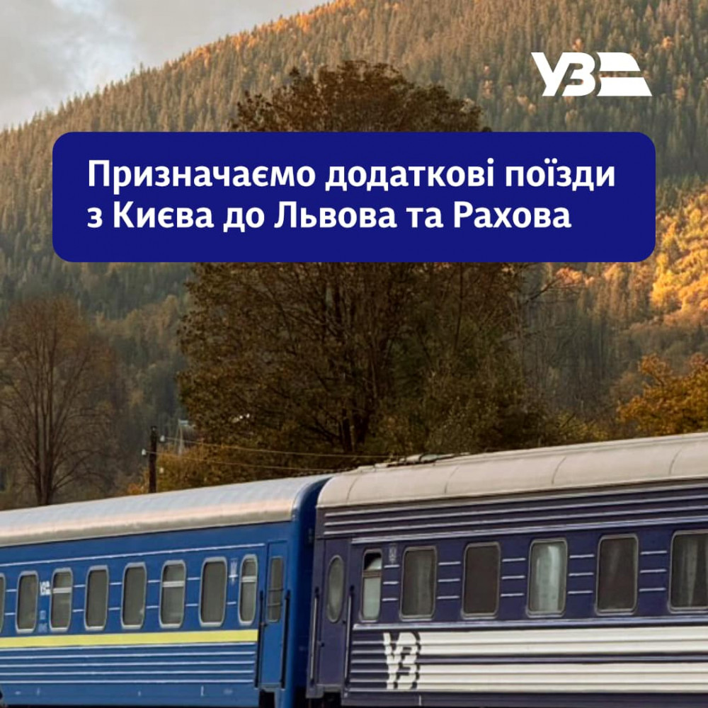 Як повідомили у пресслужбі Укрзалізниці, призначили додатковий поїзд №245/246 Київ — Рахів, який відправлятиметься з Києва 30 жовтня о 15:58 та прибуватиме до Рахова о 8:55. В зворотному напрямку, з Рахова, поїзд відправлятиметься 31 жовтня о 16:43 та прибуватиме до Києва 1 листопада о 8:55.
