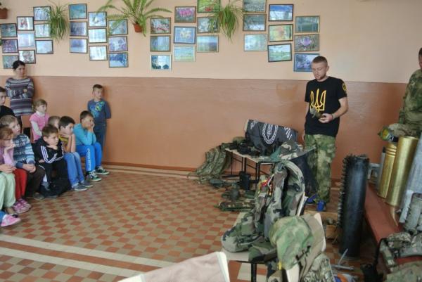 «Найкраще виховання, - говорить свободівець Олег Туєшин, - це виховання власним прикладом. Ми часто виїздимо до шкіл, інтернатів та інших навчальних закладів для проведення уроків мужності та патріотизму, показуємо свої можливості та розповідаємо дітям про свою службу в зоні бойових дій. Школярам дуже цікаво, вони отримують масу позитивних емоцій і надовго запам‘ятовують такі заходи. Їм є в кого вчитися починаючи від Героїв Крут, бійців Холодного Яру, вояків ОУН-УПА, а сьогодні це бійці російсько-української війни» - наголосив на завершення націоналіст.