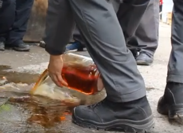 "Якщо раніше в "Циганському дворі" наші працівники виливали фальсифікат з пляшок та банок мірявши його літрами, то тепер у нас нова одиниця виміру - тепер ми виливаємо відрами. Продаж здійснюється прямо з відра. Цей спиртовий фальсифікат дешевший, тож соціально не забезпечені версти населення мають можливість придбати його. Адже в магазині купити алкоголь дорого, а в таких наливайках людина, яка здала люк чи ришітку може собі дозволити", - розповів Кухарук.