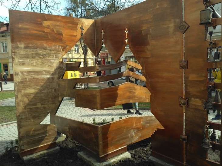 "Пам'ятник Першій українській церкві, який освятив патріарх Філарет, УПЦ КП і голова УГКЦ Блаженійший Святослав, відкритий на день ювілею міста, створений з "чорного необробленого металу, який повинен покриватися природною патиною – символом древності та вічності.... "...помалювали туалетною олійною фарбою під "бронзового вождя" чи радіатори опалення в комунальній квартирі.... " – не стримував емоцій Давидюк.