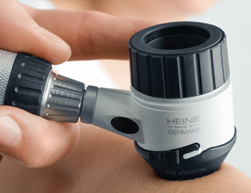 Для довідки: Дерматоскопія – це візуальний метод, який з успіхом застосовується понад 10 років в країнах Америки, Європи та Австралії. За допомогою спеціального приладу – дерматоскопу, лікар отримує десятиразове збільшення родимки. Це дозволяє більш ретельно вивчити її структуру. Якщо структура неоднорідна, несиметрична, не має чітких меж, то це, як правило, говорить про її злоякісний характер.