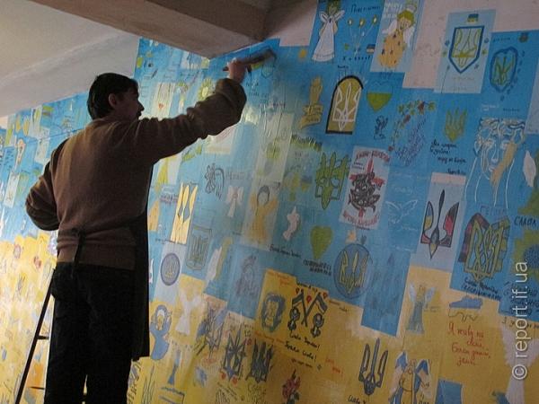 У франківській школі №21 одну зі стін холу будуть прикрашати малюнки учнів та вчителів – разом же вони зливають у величезний синьо-жовтий прапор.