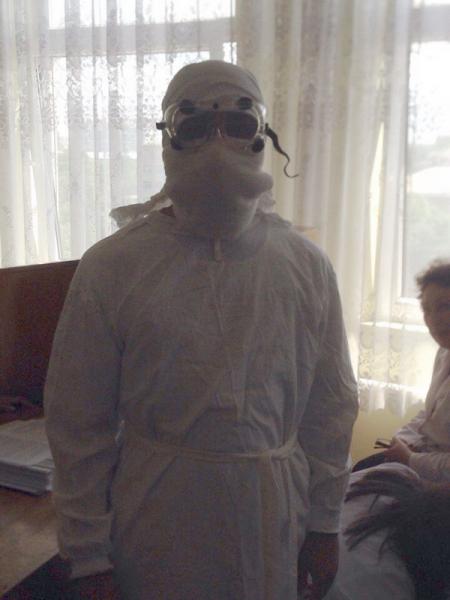 Були відпрацьовані практичні навички одягання та роздягання протичумного костюму, правила забору матеріалу від хворого. Також медичні працівники здали залік з особливо небезпечних інфекцій.