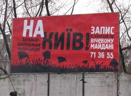У місті з'явилися навіть банери, на яких закликають людей їхати до Києва. Є для цього в центрі і спеціальний намет. Добровольці стають в чергу. Автобусів не вистачає.