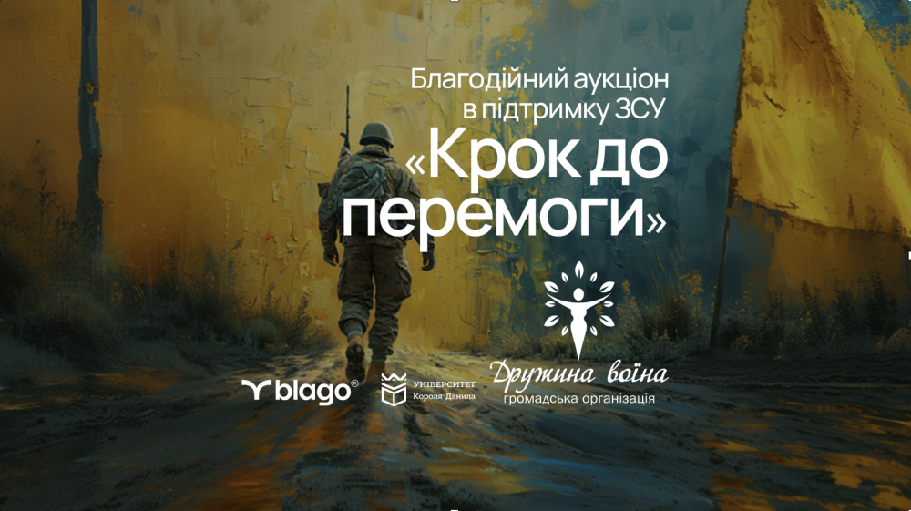 Дружини воїнів, разом з компанією blago та Університетом Короля Данила, хочуть підтримати бойові підрозділи, в яких захищають Україну їхні чоловіки, та організовують благодійний аукціон з цінними лотами.