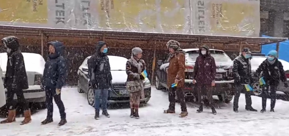 В Івано-Франківську влаштували "Ланцюг єдності" між готелями "Дністер" і "Київ"