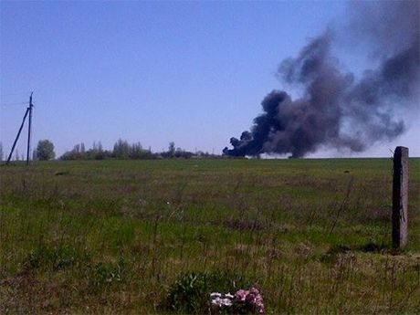 "Добре озброєнi бiйцi вiдiгнали мiсцевих мешканцiв та журналiстiв, якi поспiшили до блокпосту на входi, на кiлометр назад. Офiцер пiдтвердив, що вiйськовi українськi. Заявив, що внаслiдок несправностi вертольота вiдбулося загорання i вибух вертольота з бойовою амунiцiєю. Що це суто технiчна проблема", - написав він.