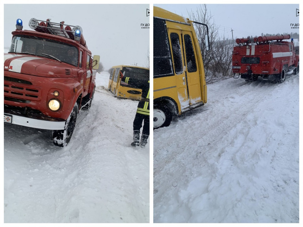"Сьогодні зранку до рятувальників по допомогу звернувся водій пасажирського автобуса, який внаслідок негоди застряг на засніженій ділянці та не міг самостійно продовжити рух. Подія трапилась на автодорозі в селі Озеряни Олешанської ТГ. В салоні автобуса перебувало двоє пасажирів. Добровольці місцевої пожежної команди села Олеша прибули до місця події та допомогли відбуксирувати автобус на тверде покриття", - зазначається у повідомленні ДСНС.