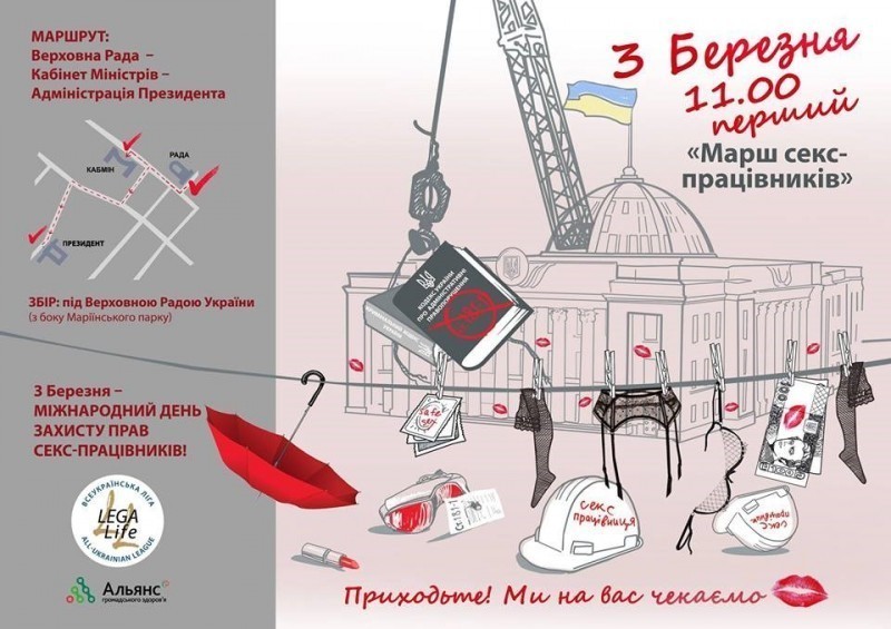 3-го березня, у Міжнародний день прав секс-працівників, вперше в Україні, декілька десятків громадських активістів, працівниць та працівників секс-індустрії за підтримки правозахисників взяли участь у «Марші секс-працівників» з вимогою скасувати адміністративну відповідальність за заняття проституцією.