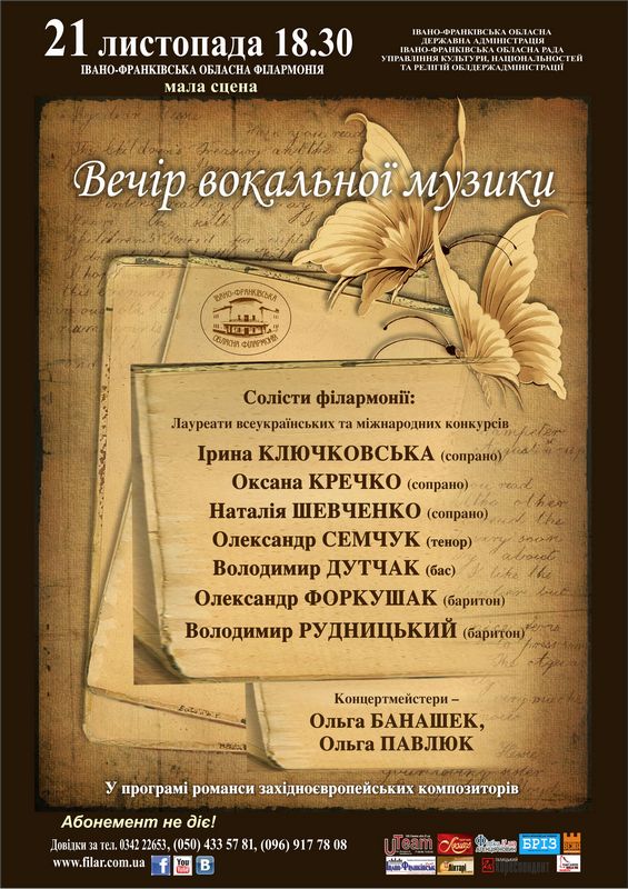 Ціна квитків: 20-30 грн. Поч. о 18.30 (мала сцена)