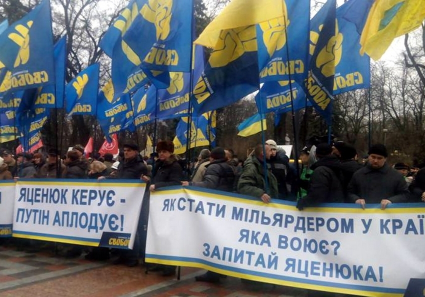Активісти ВО «Свобода» пікетують Верховну Раду України з вимогою відставки уряду Арсенія Яценюка.