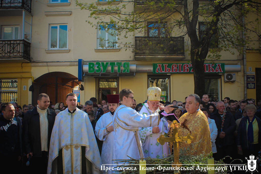 Після Божественної Літургії на площі А. Шептицького Митрополит Володимир спільно зі священнослужителями Архікатедрального Собору освятив вербові галузки та привітав вірян з великим святом. Також Предстоятель Івано-Франківської Архієпархії закликав присутніх побожно та свято завершити час посту, беручи участь в богослужіннях Страсного тижня. На завершення Владика Володимир уділив громаді своє Архіпастирське благословення.