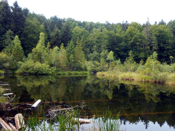 З усіх боків озеро обступив густий смереково-ялицевий ліс. Особливо гарно тут, напевно, восени, коли листяні дерева розфарбовують ліс у полум’яні відтінки, а ялиці, як і решту року, стоять насичено зелені. Різнобарв’я лісу тільки додає мальовничості темним водам Журавлиного, берегам, встеленим м’яким мохом та поверхні, вкритій легким павутинням зелені.
